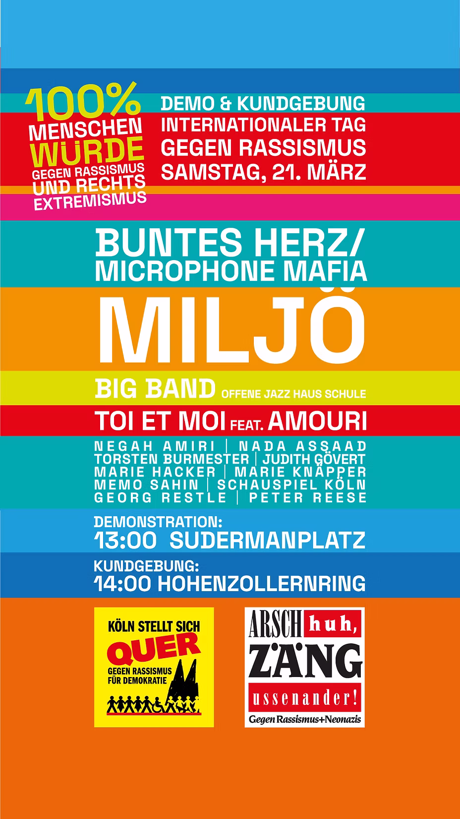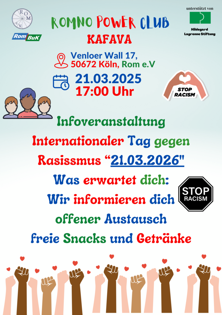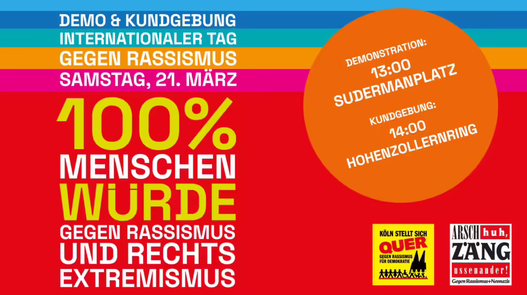 Auch in diesem Jahr veranstaltet das Kölner Forum gegen Rassismus und Diskriminierung und seine Mitgliedsorganisationen anlässlich des Internationalen Tags gegen Rassismus am 21. März eine Vielzahl von Aktionen sowie interessanter Programmpunkte vor Ort in den verschiedenen Stadtteilen Kölns, aber auch online. Mach mit!