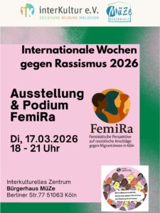 Die Veranstaltungsreihe wird gefördert durch Antirassismusmittel der Stadt Köln, Kommunales Integrationszentrum.